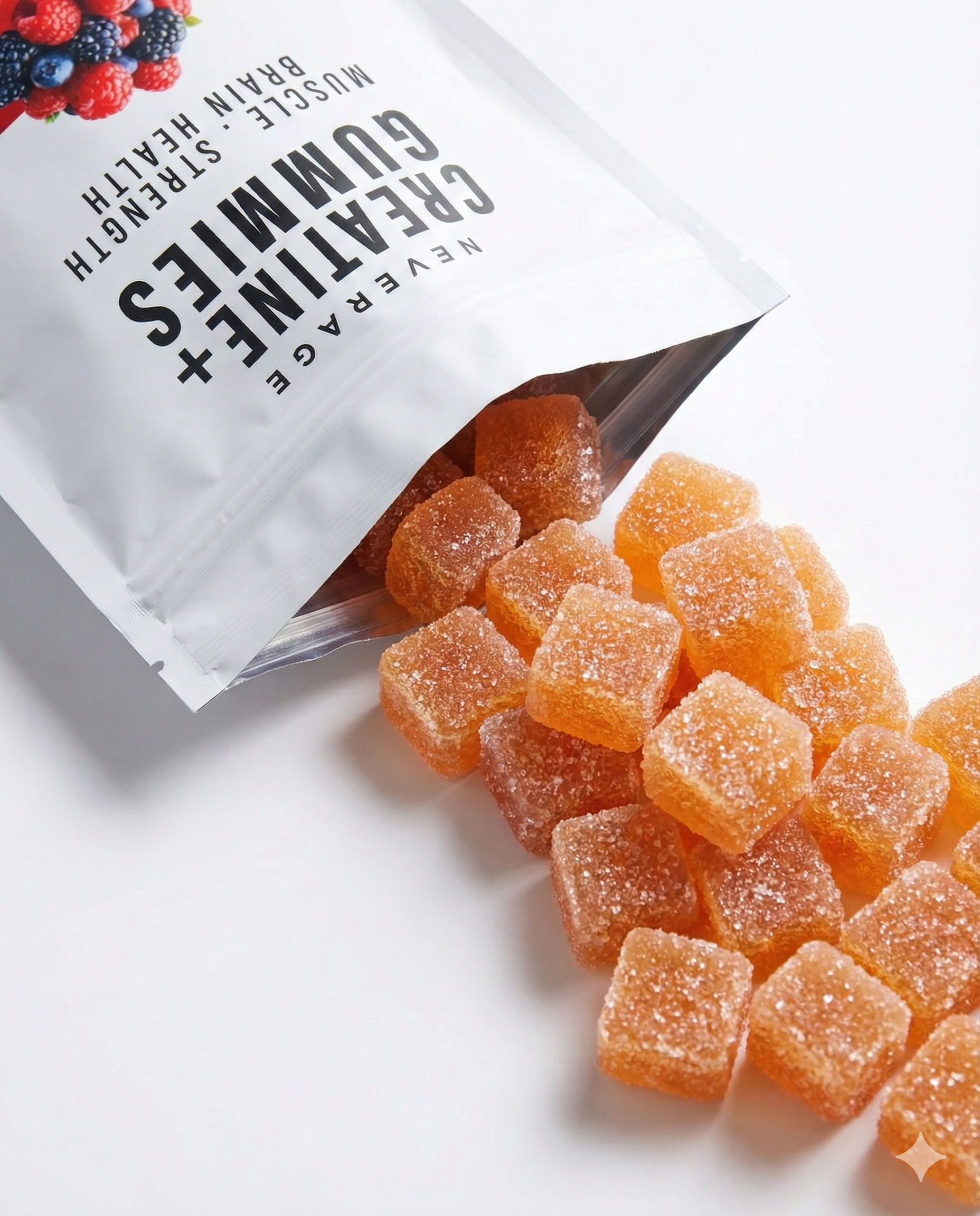NeverAge Creatine Gummies skip the clumps, bloat, and bad taste of powder. Just grab, chew, and go. Clean ingredients, no artificial flavors, and easy to take anywhere.